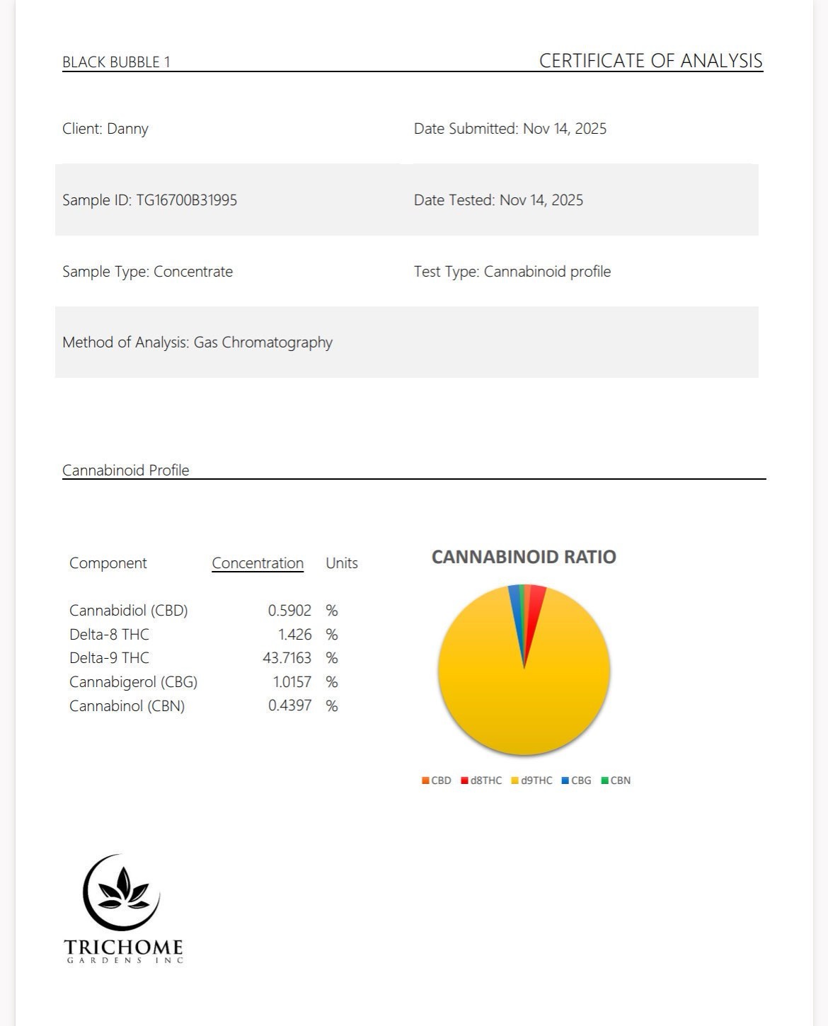 This pressed bubble hash with distillate is a true connoisseur’s treat—sticky, flavorful, and powerful, all while carrying the prestige of the Zushi name.