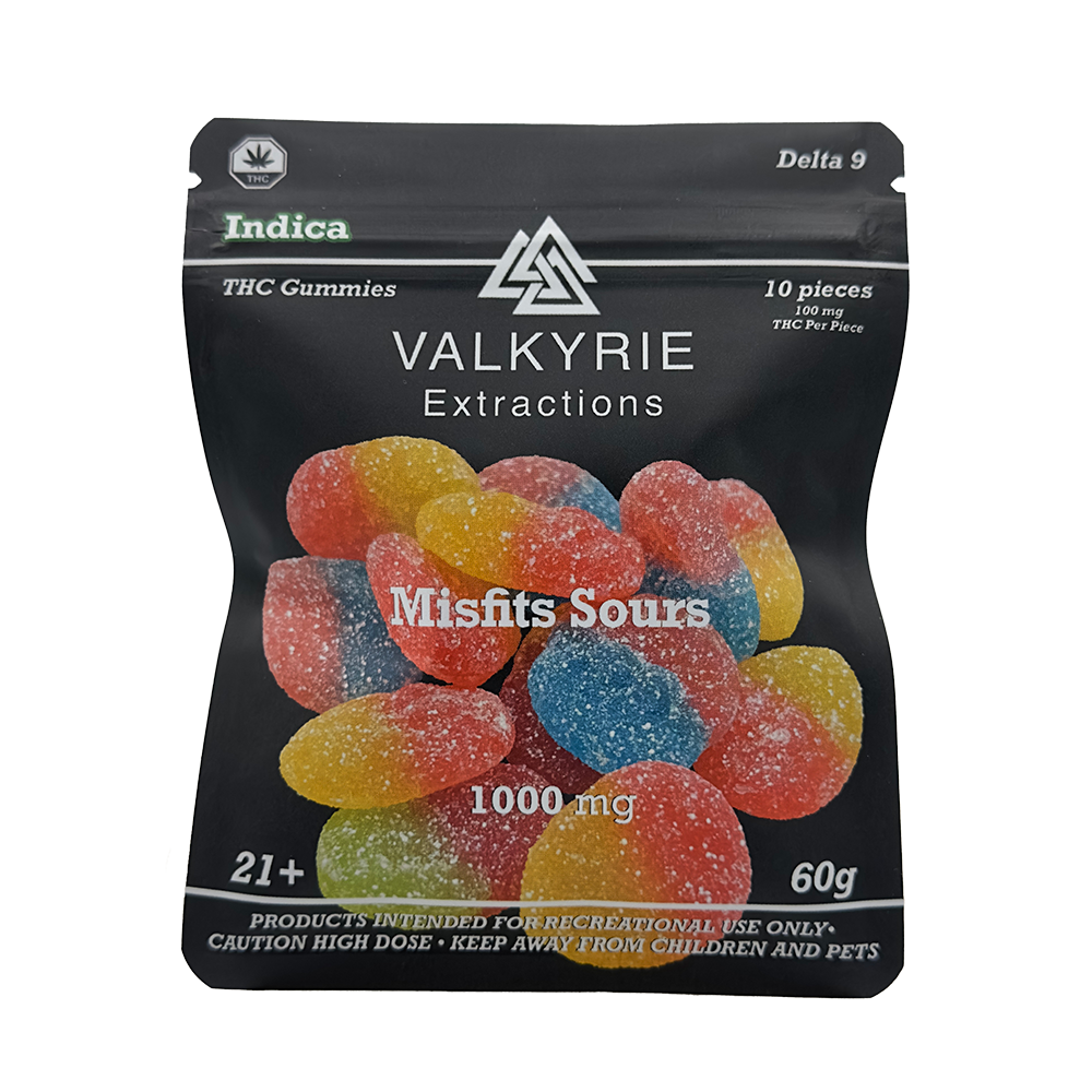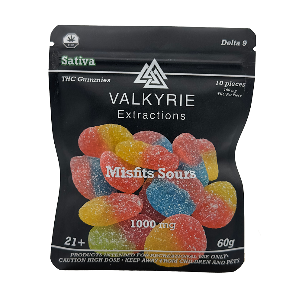 Be the first to review “Misfits Sours 1000mg THC distillate infused gummies”