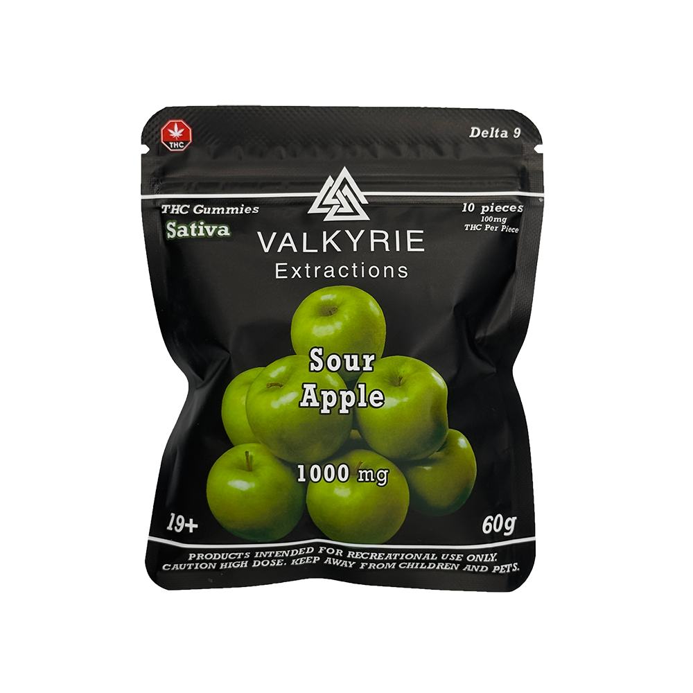 Sour Apple 1000mg THC distillate infused gummies