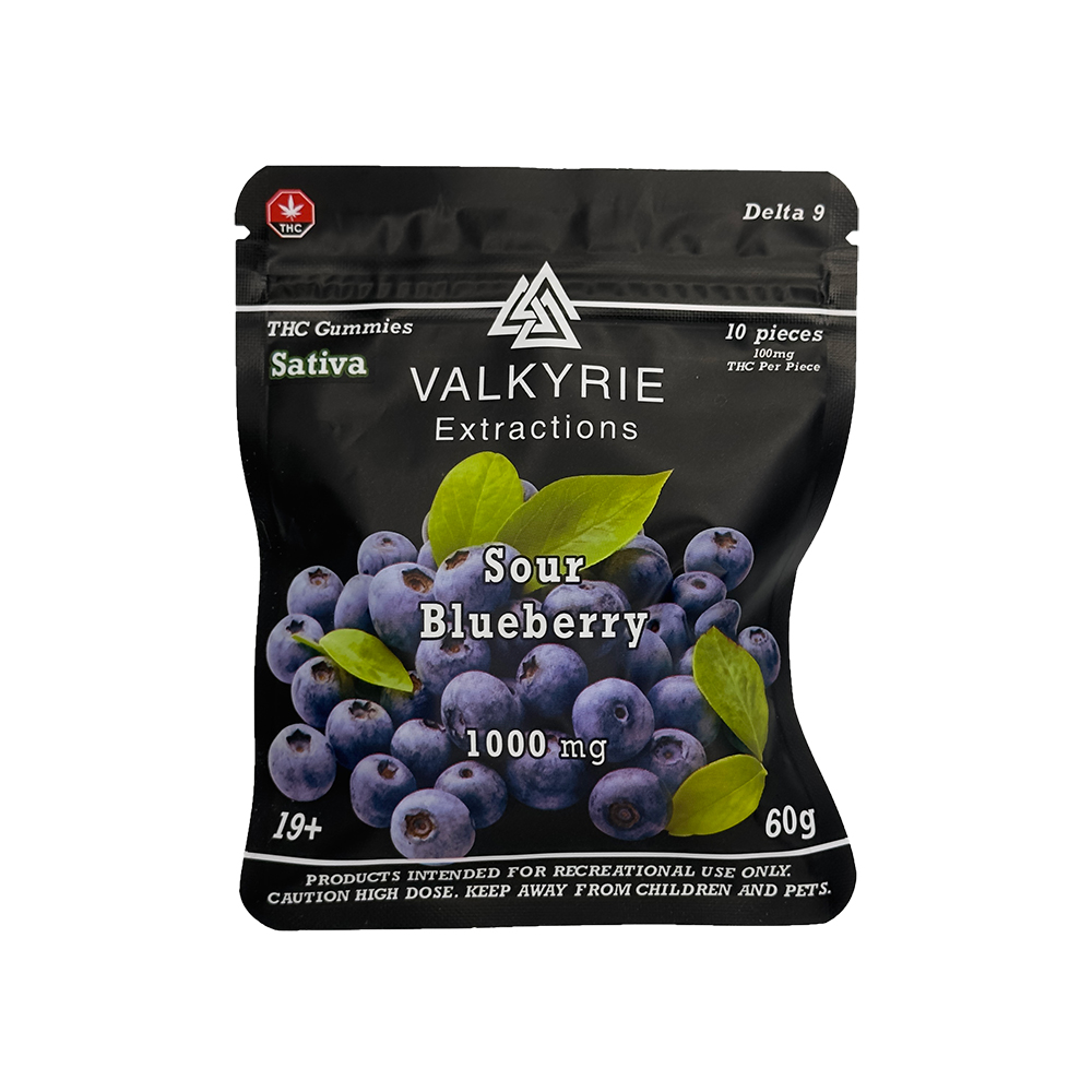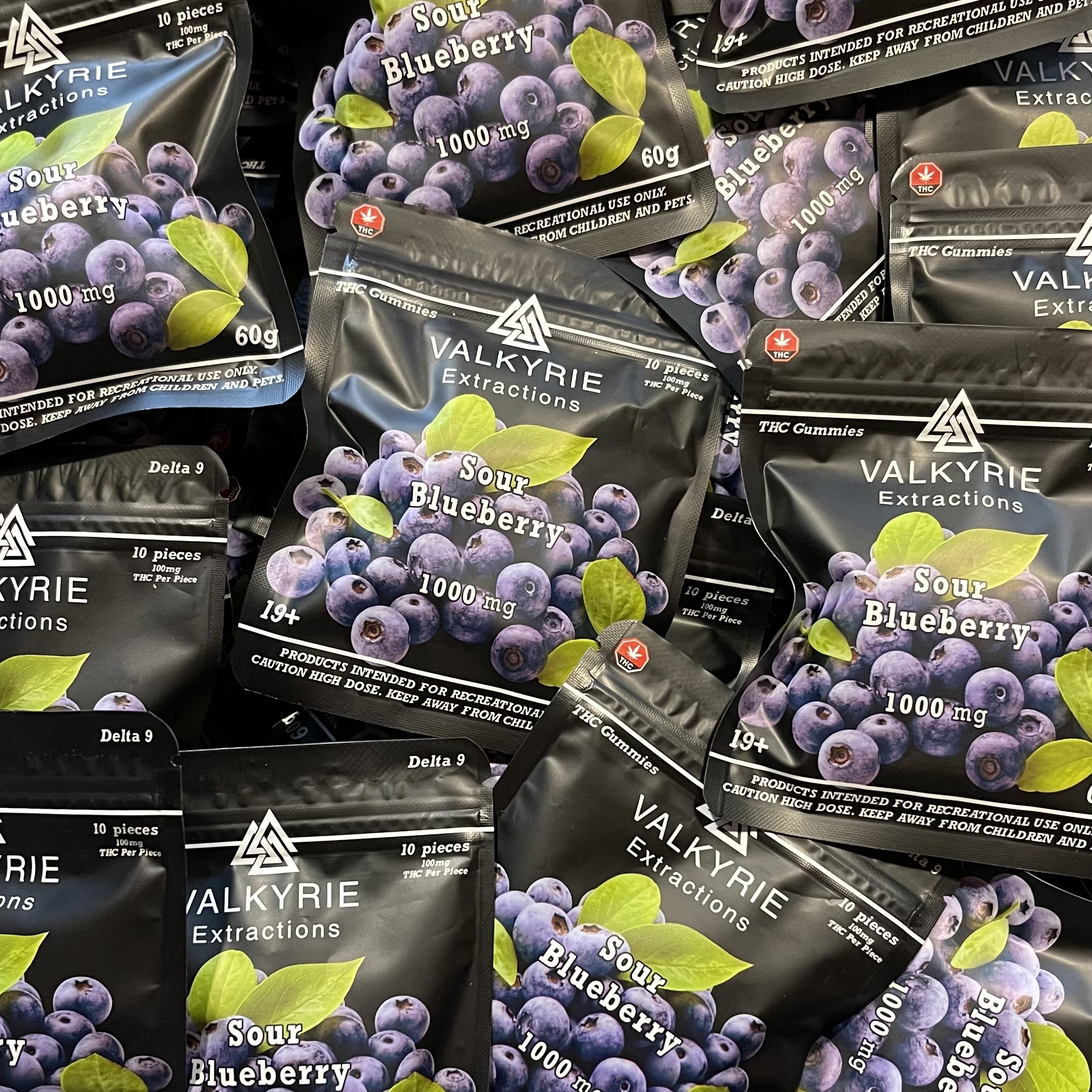 Be the first to review “Sour Blueberry 1000mg THC distillate infused gummies”